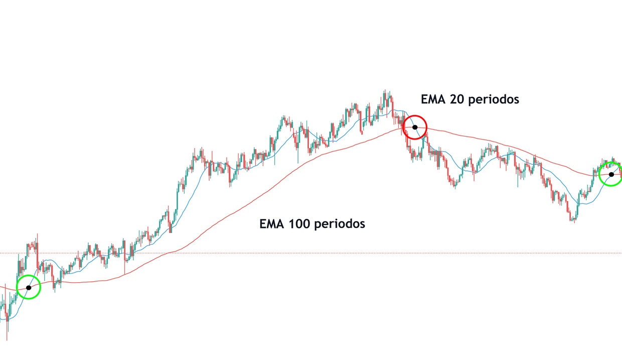 Los puntos de corte representan momentos donde el corto plazo diverge sobre el largo y por tanto una posible compra o venta.