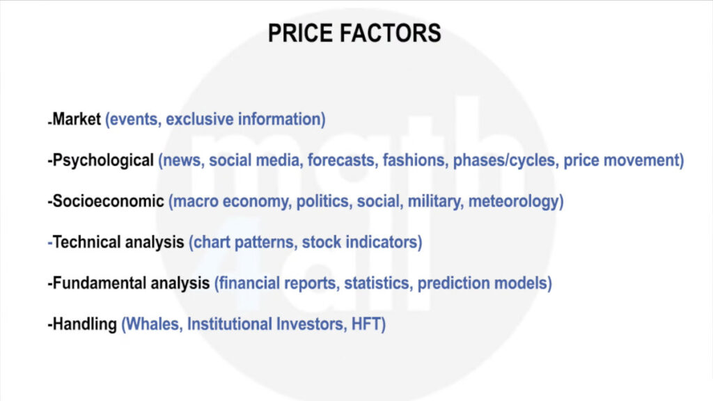 Some are highly psychological, such as news, social media posts, and even predictions themselves. It may seem strange, but the price itself influences the price—curious, right?