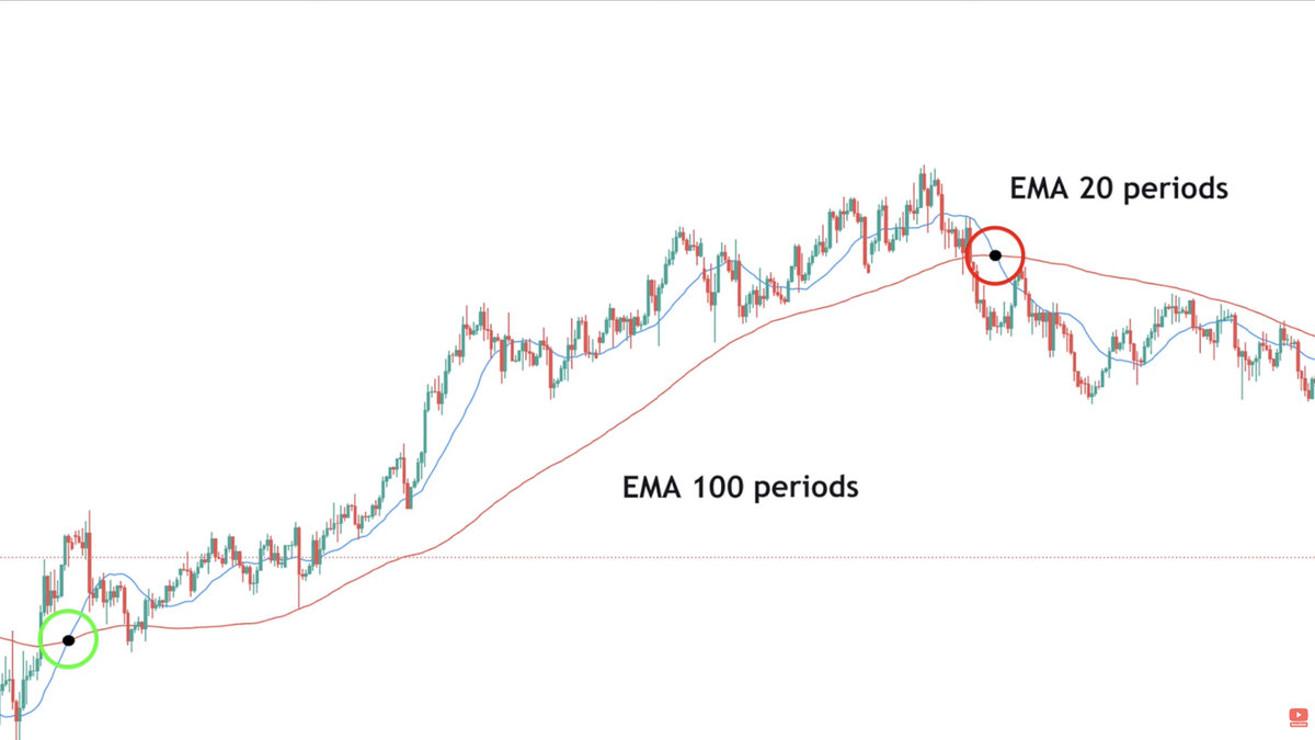 The crossover points represent moments where the short term diverges from the long term, thus indicating a possible buy or sell.