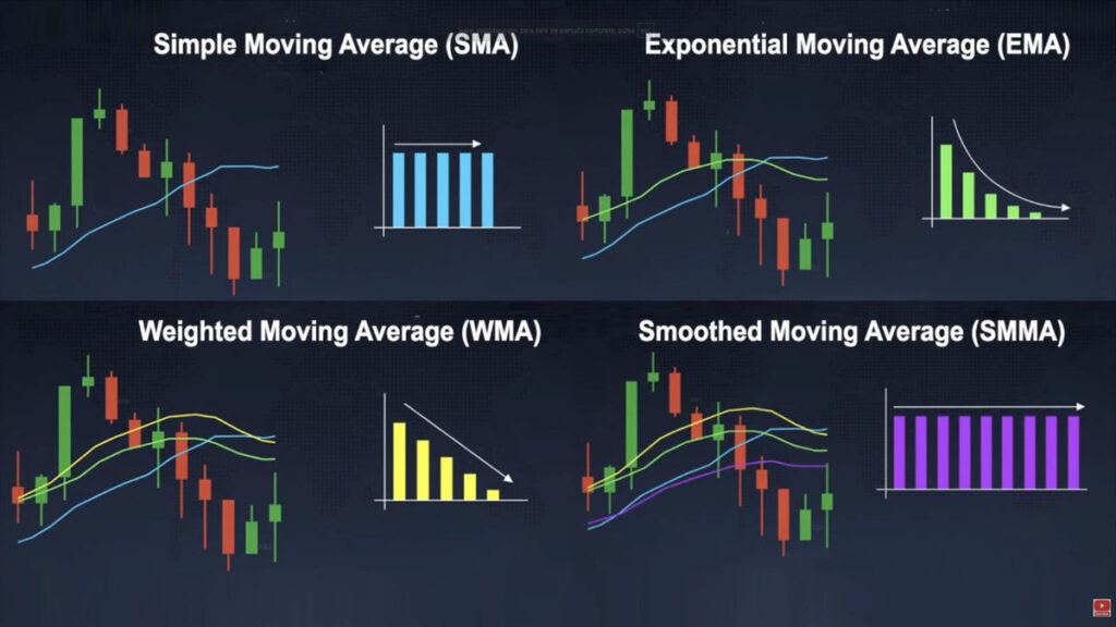 There are different types of moving averages, and they differ mainly in the priority they give to the values of those averages. Most indicators use exponential moving averages because they give more importance to the latest price values.